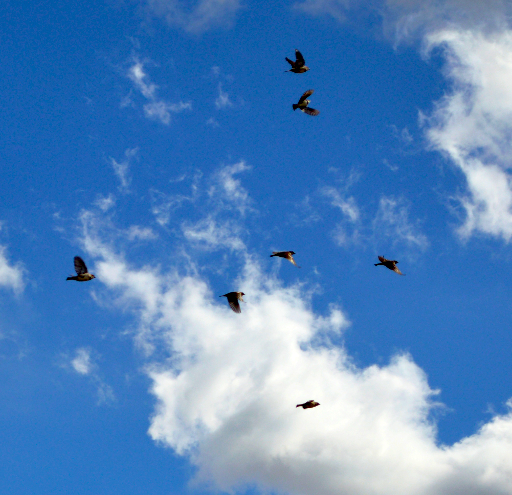 This image presents a group of birds flying together.