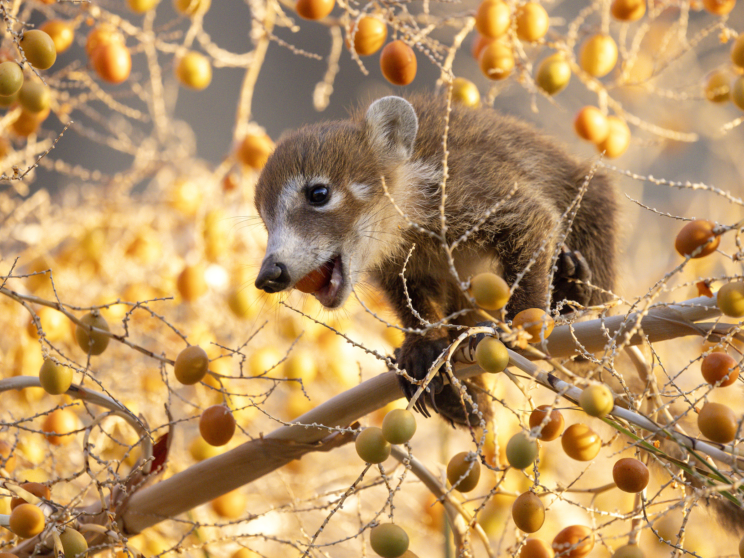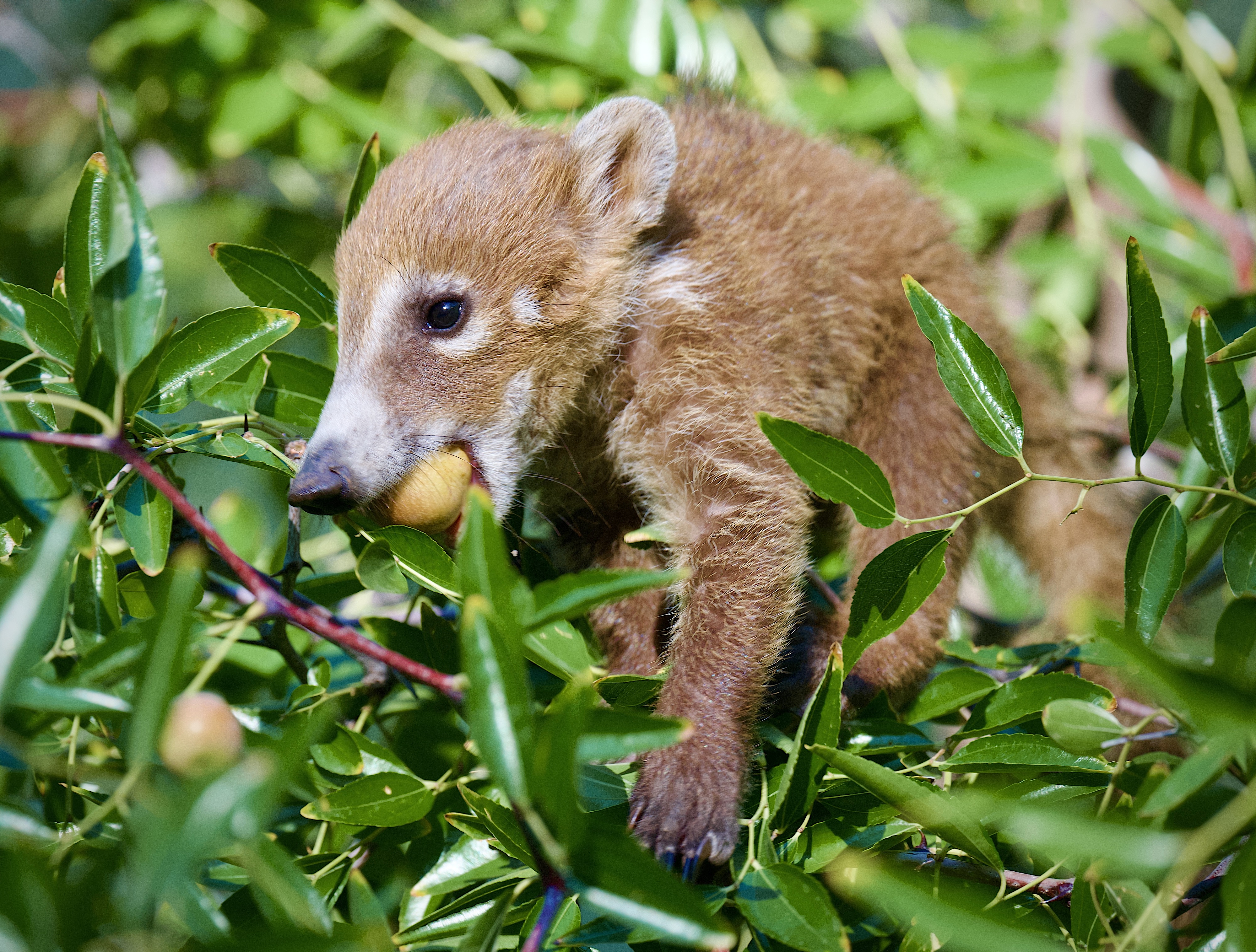 A Mouthful of Jujube Fruit for breakfast for this Adorable Baby Coatimundi.