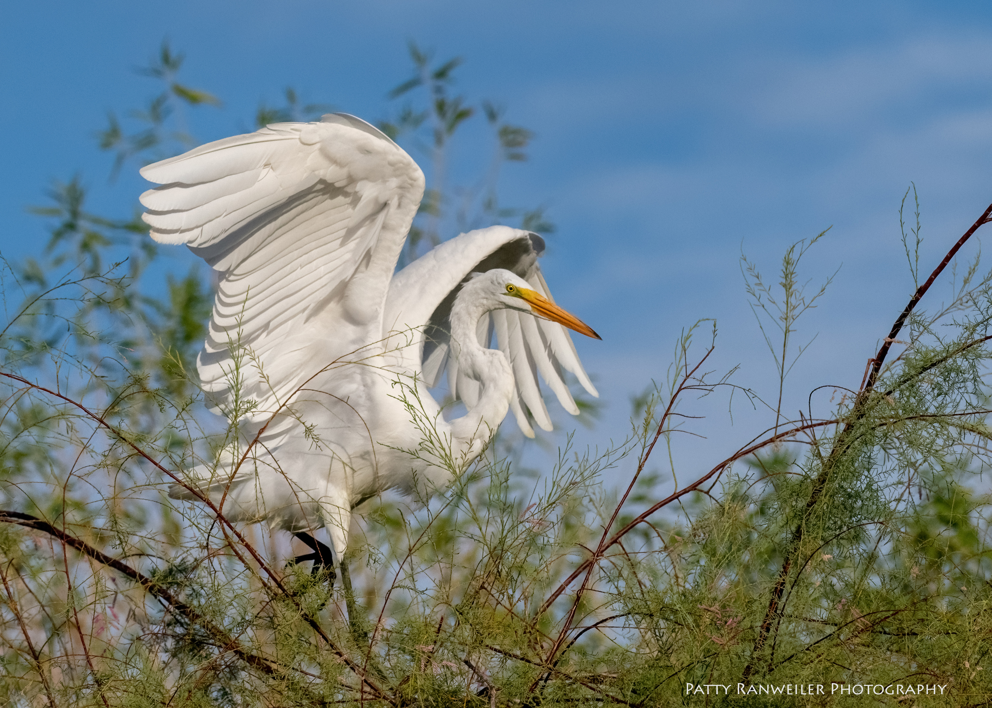 Tree Topper - Snowy Egret awaiting the perfect timing to catch a fish!