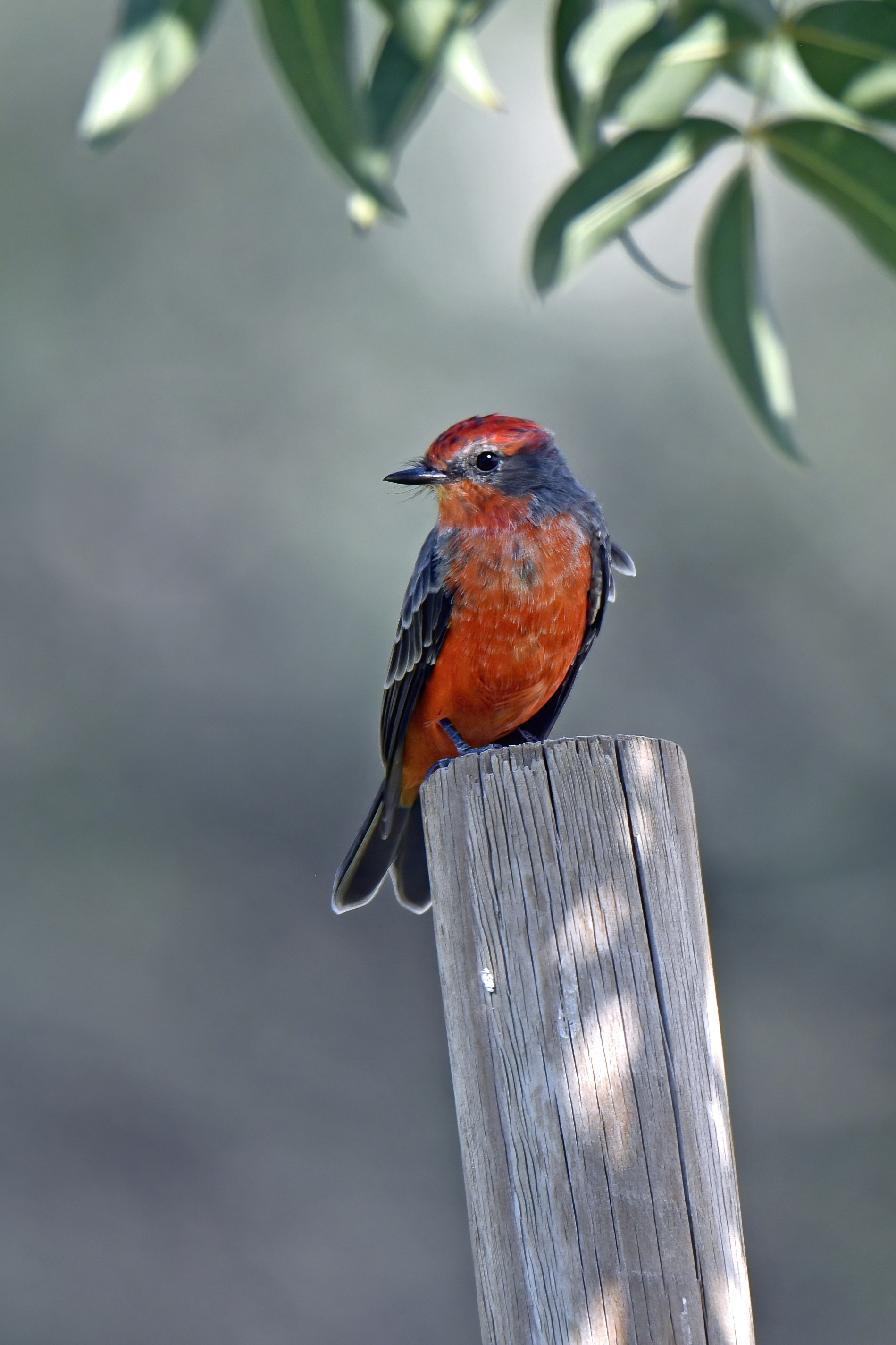 An immature male Vermilion Flycatcher surveys the area around a pond in Phoenix.