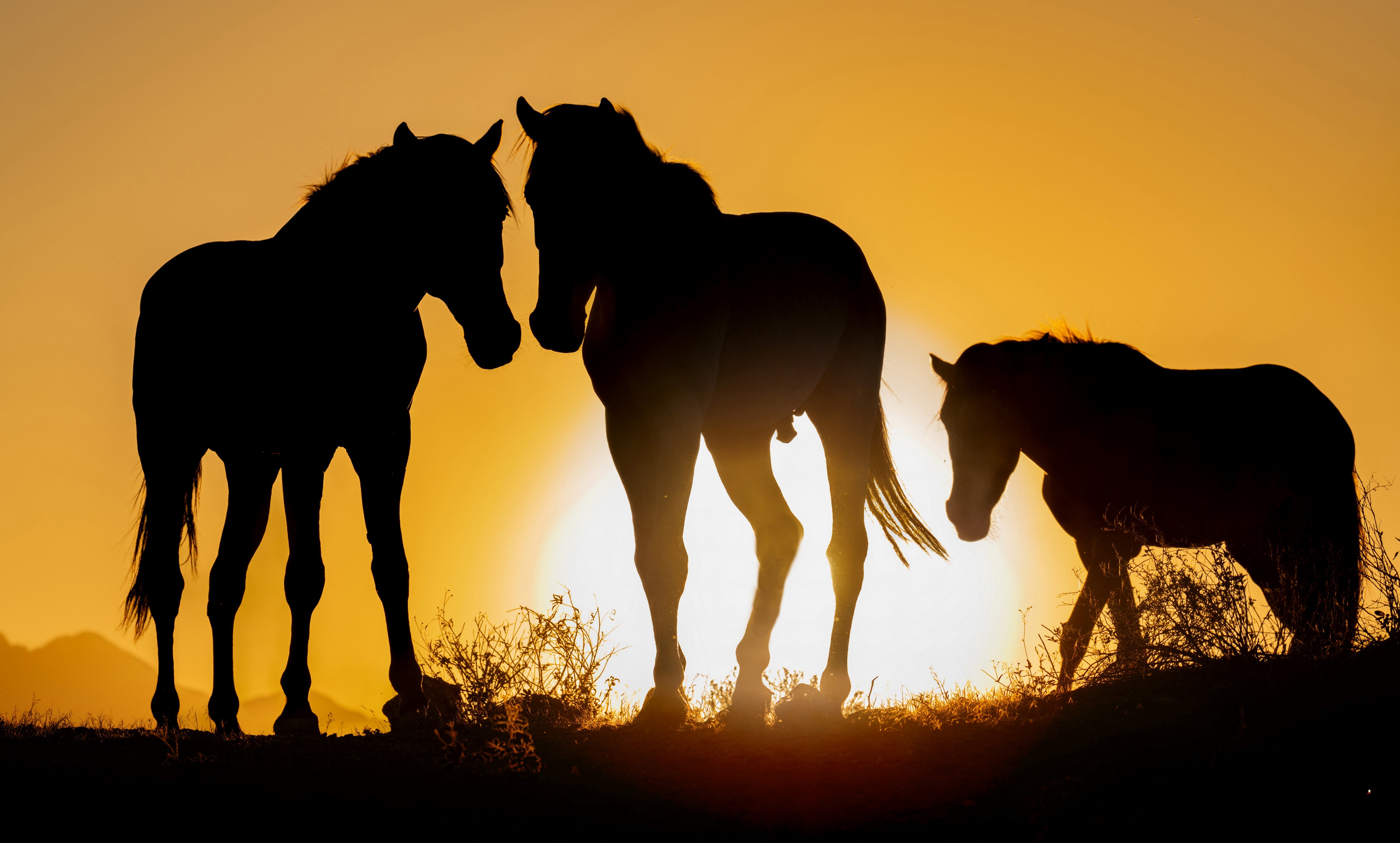 A small group of bachelors (males) silhouetted by a Sonoran sunrise.
