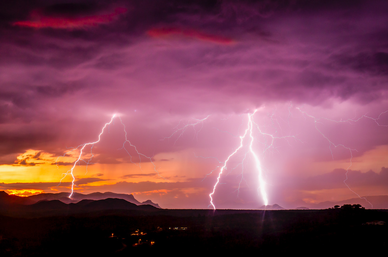 Double strikes at sunset over the Atascosa mountains, Nogales, AZ.