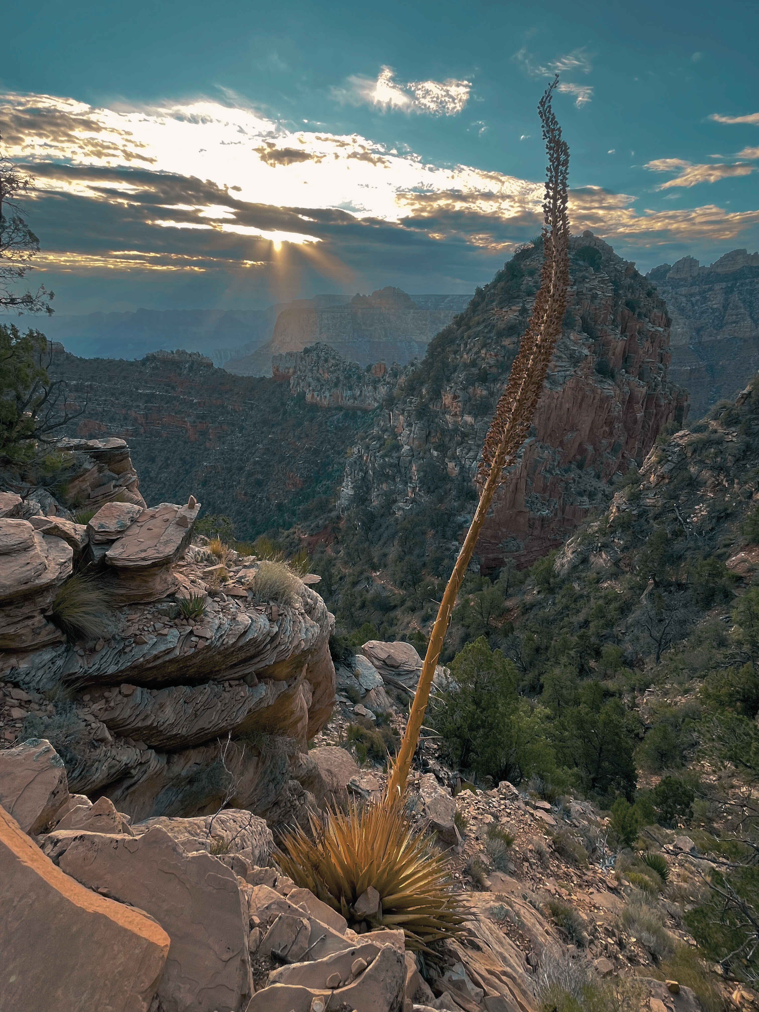 A cliffside agave reaches for a summer sunrise in Grand Canyon National Park.