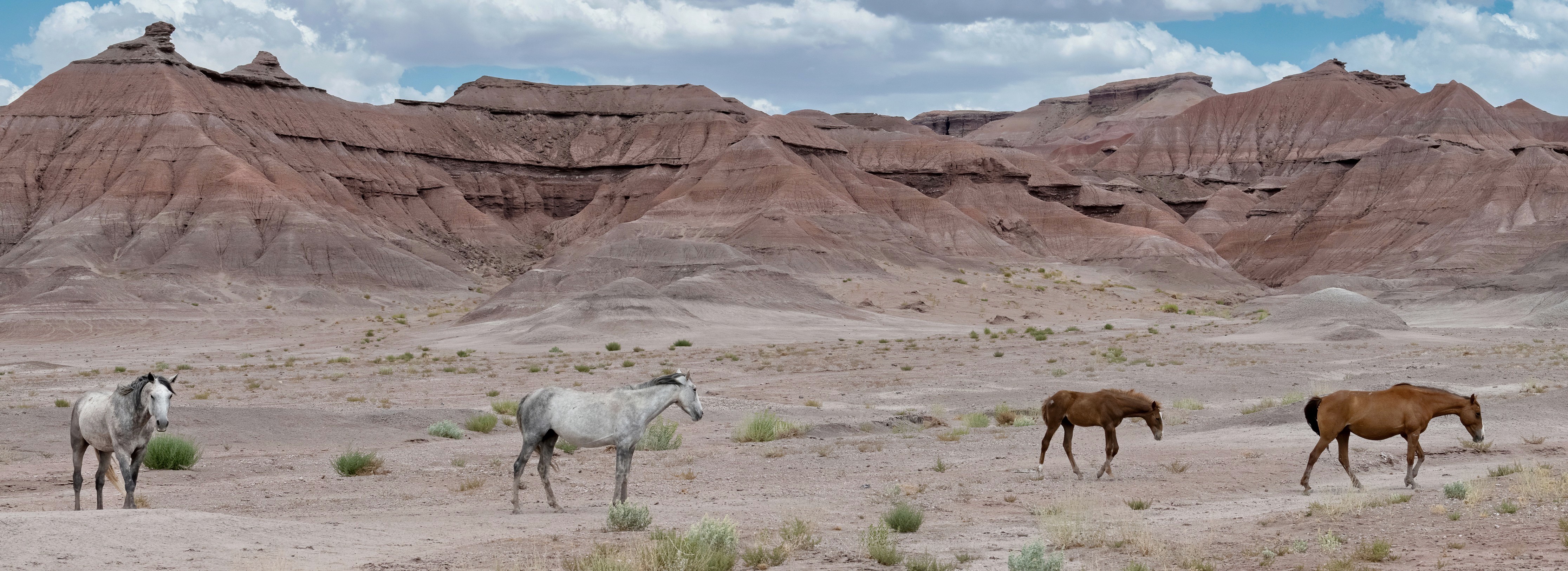 A small band of horses move through the high desert in northeast Arizona.