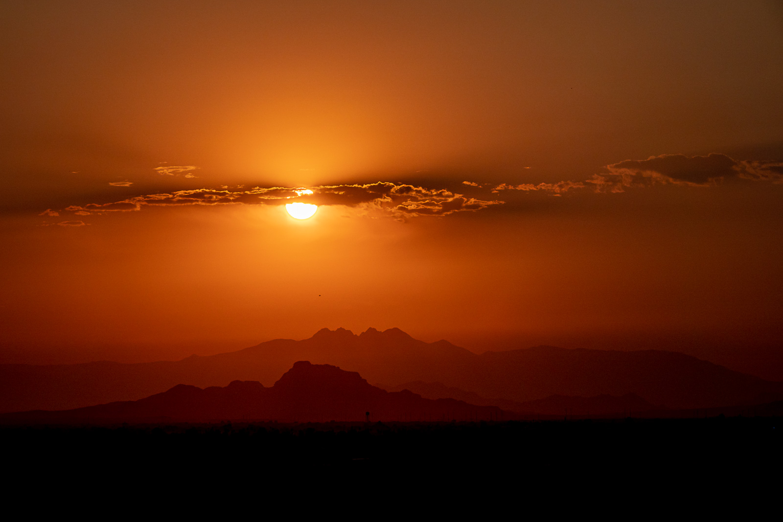 A smokey sunrise lights up Four Peaks caused by the Bush fire.