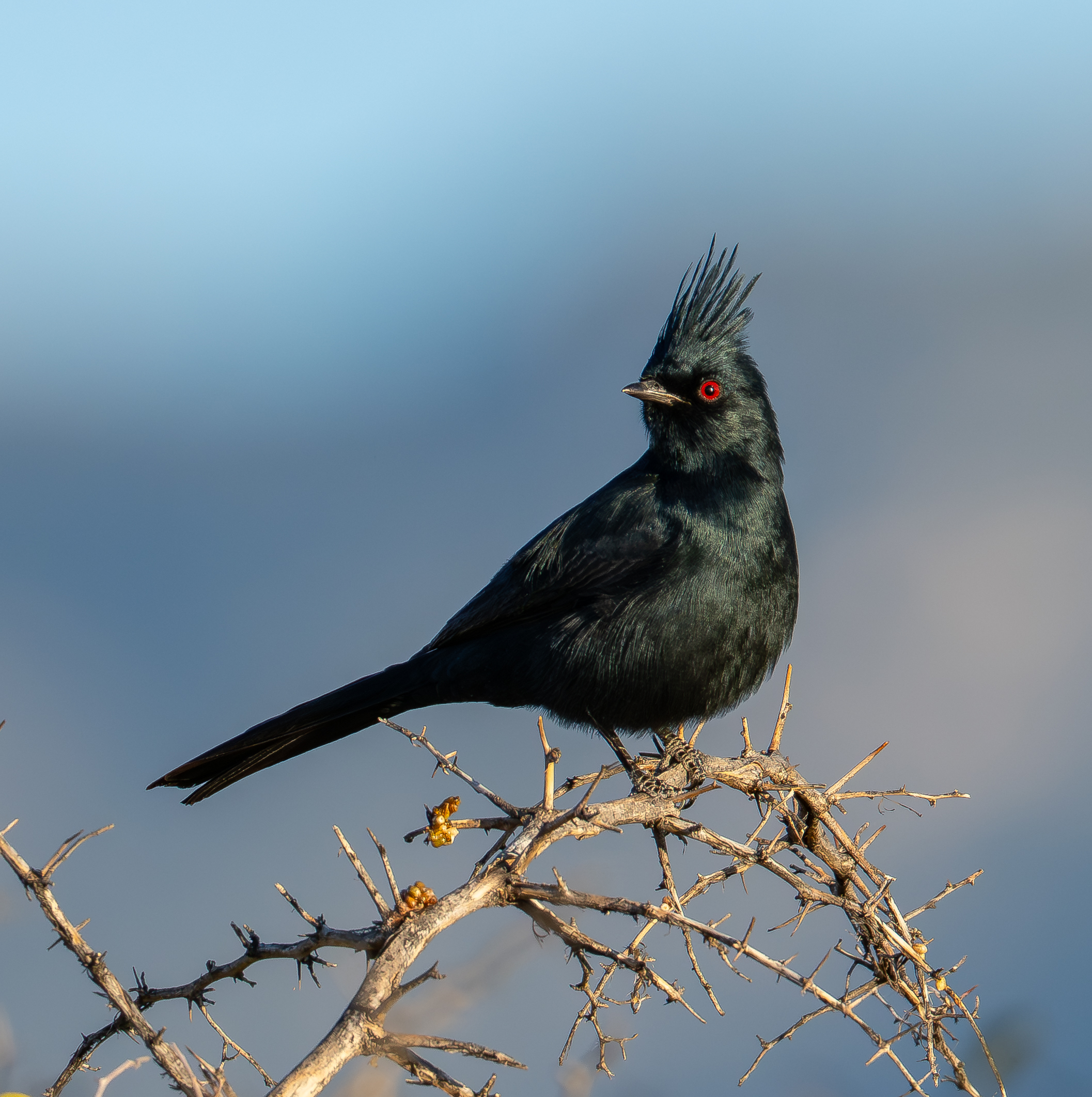 A phainopepla pauses on a branch in Case Natural Resource Park