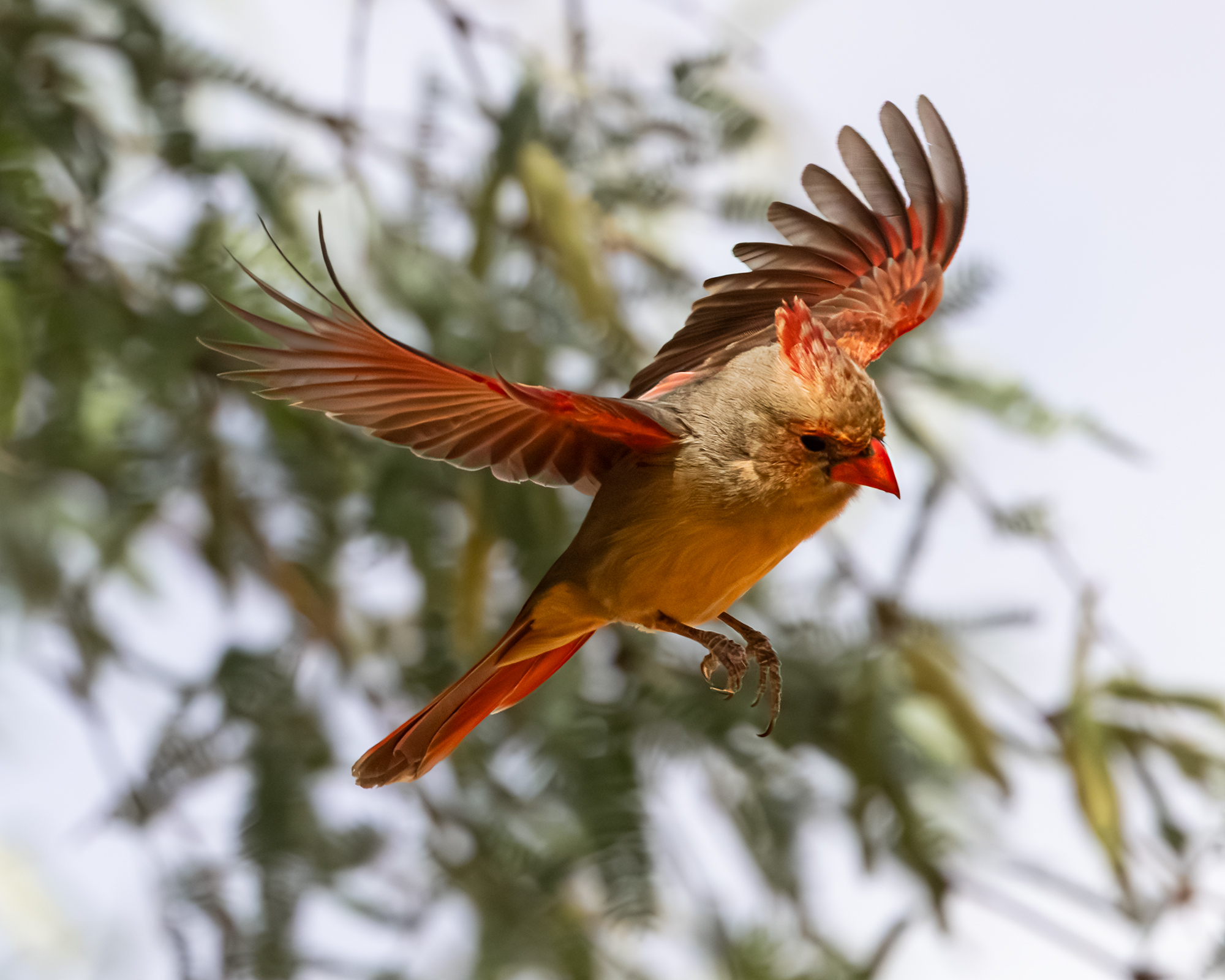A Curve-billed Thrasher launches from a weathered desert perch at sunrise in Green Valley, its wings fanned wide as it lifts into the warm morning light.