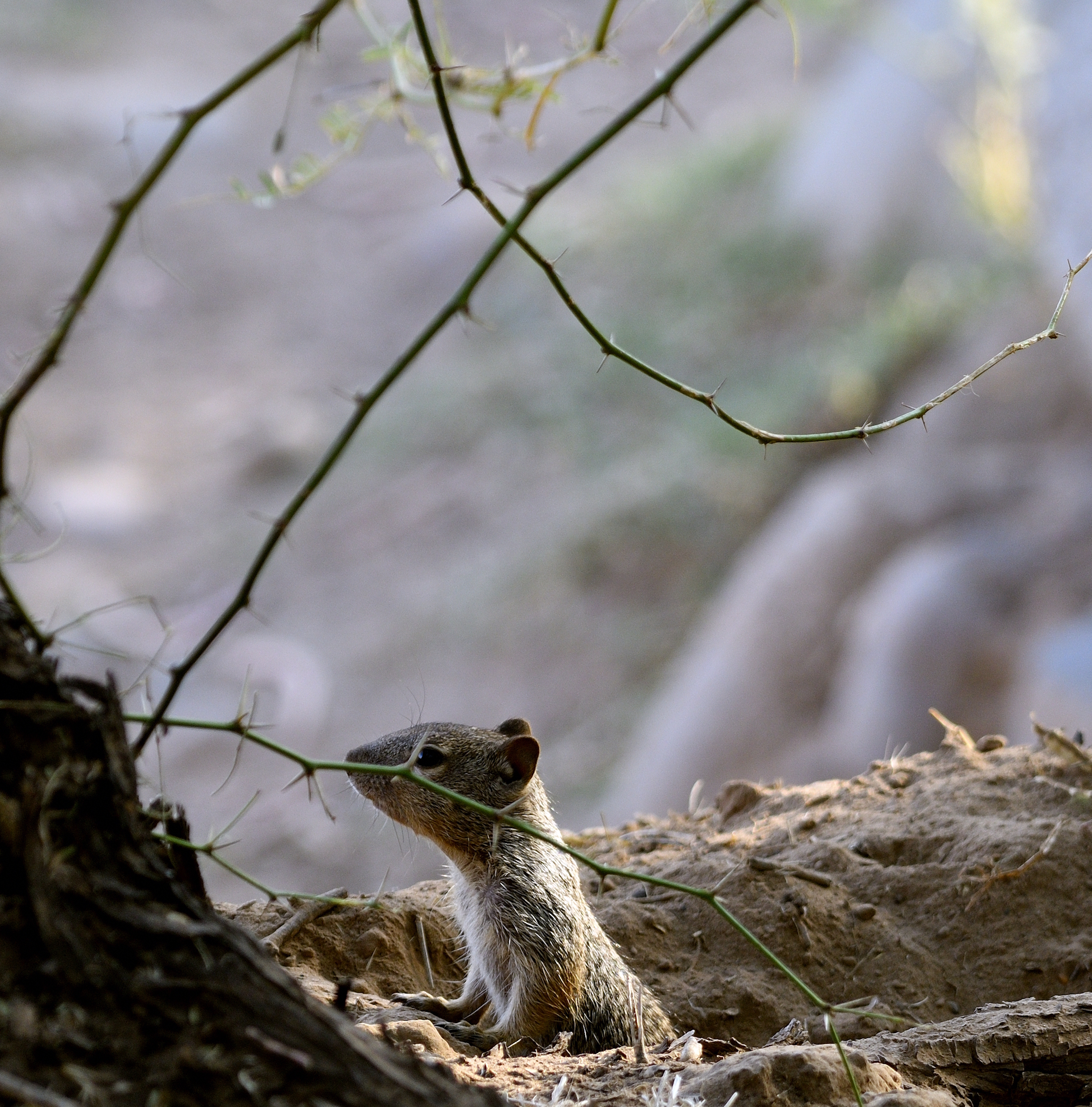 Rock squirrel peering out of it's hiding spot