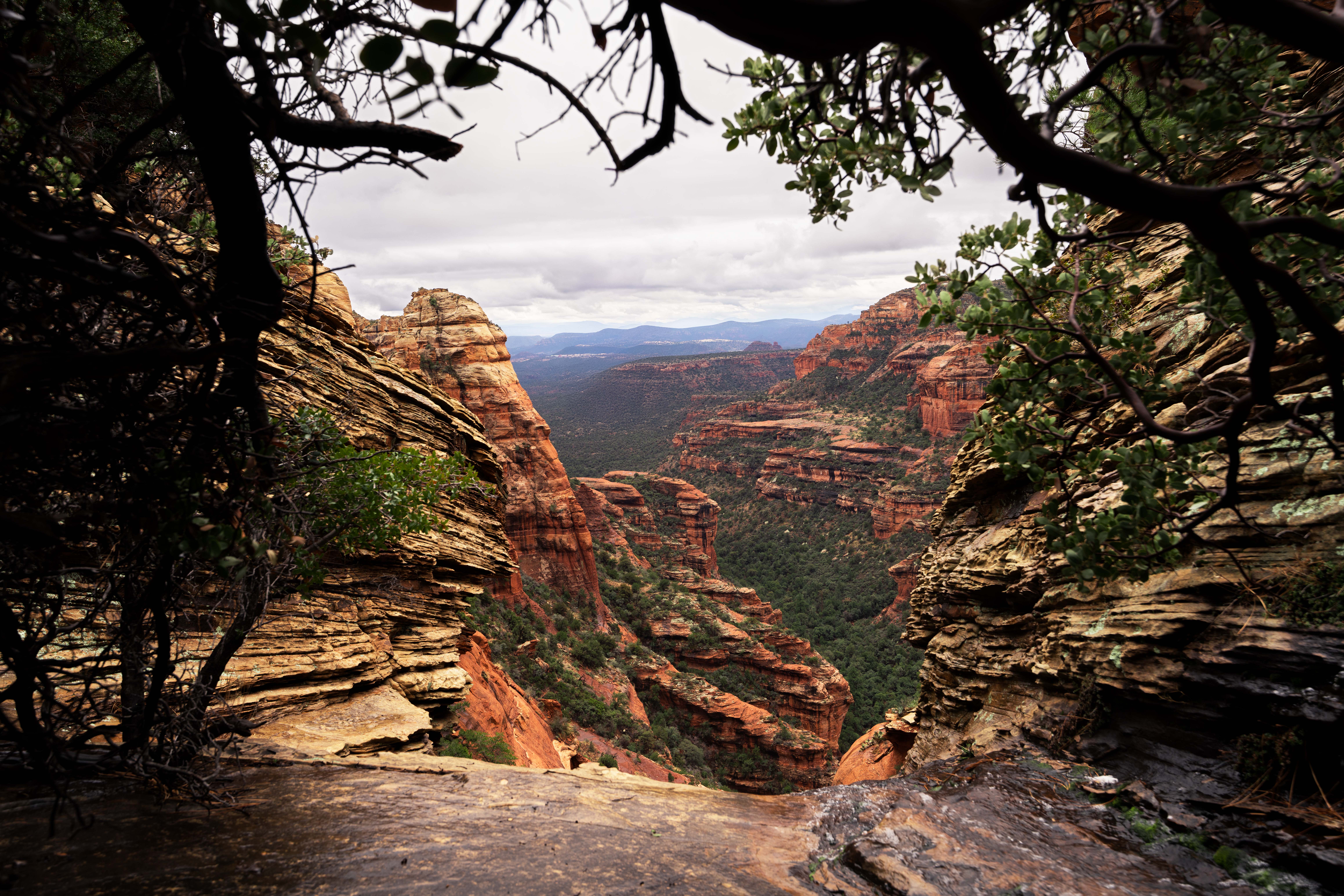 I was exploring a remote canyon in Sedona when I stumbled upon this waterfall hidden behind some bushes overlooking a beautiful view.