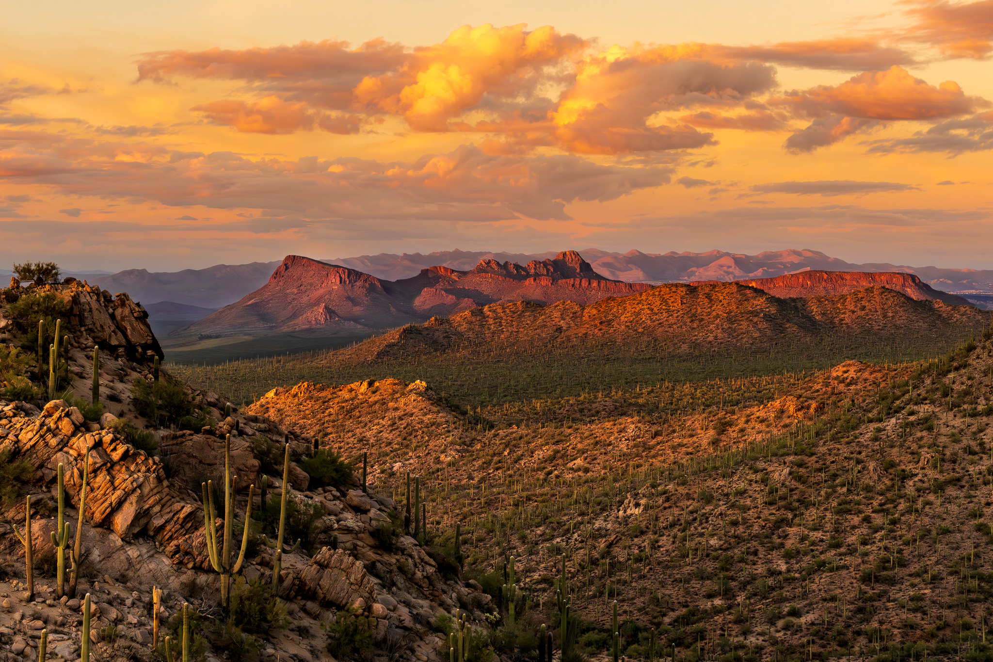 Golden hour bathes the Tucson Mountains in beautiful light.